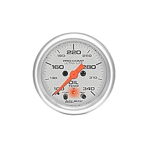 Auto Meter 4340 Ultra-Lite 2-1/16" 100-340 F Full Sweep Electric Oil Temperature Gauge with Peak Memory and Warning